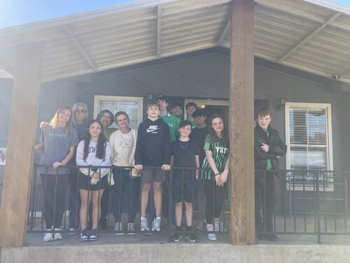 In February 2023, Dripping Springs and the Hill Country area was hit rather hard from a winter storm that caused a lot of damage to many people's properties and home. Tree branches/trees were down everywhere and many people were left without power for days. After the weather cleared up, some of the youth got out to help out a fellow DSPC member/high school volunteer with her yard that had a ton of tree branches everywhere! We are so thankful for this person and it's an honor to get to serve her!